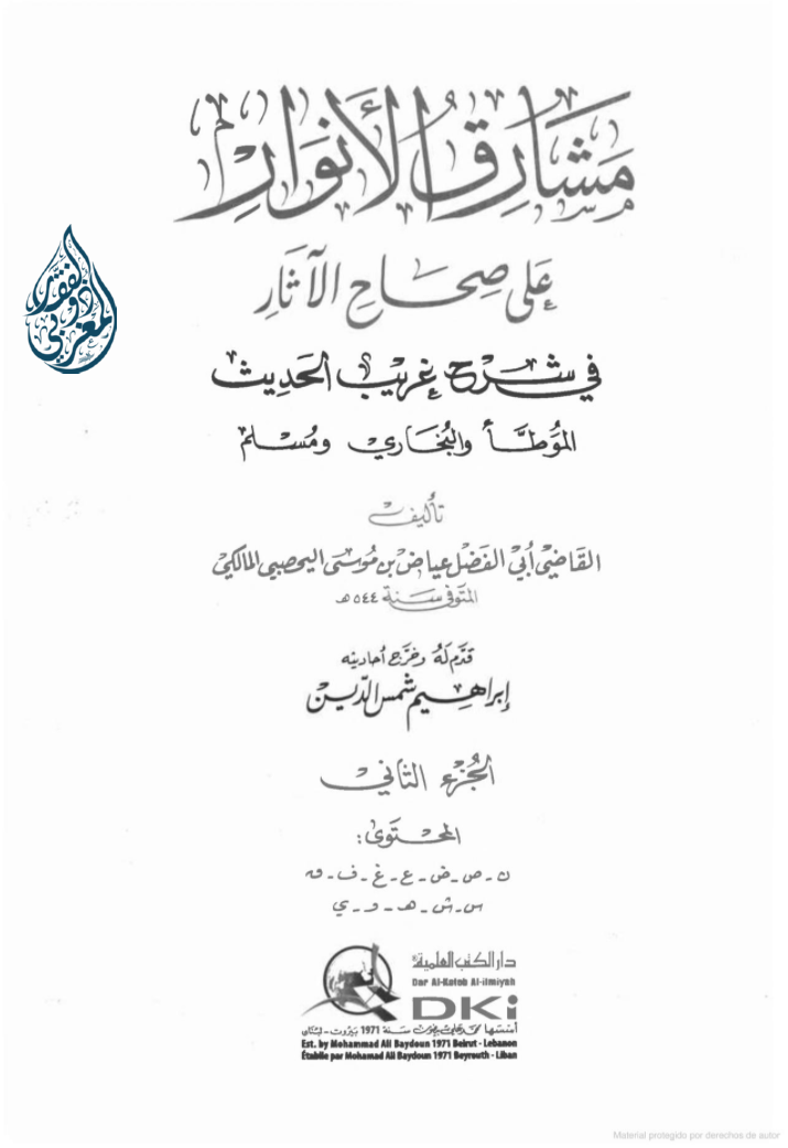 «مشارق الأنوار على صحاح الآثار» (2/ 264):