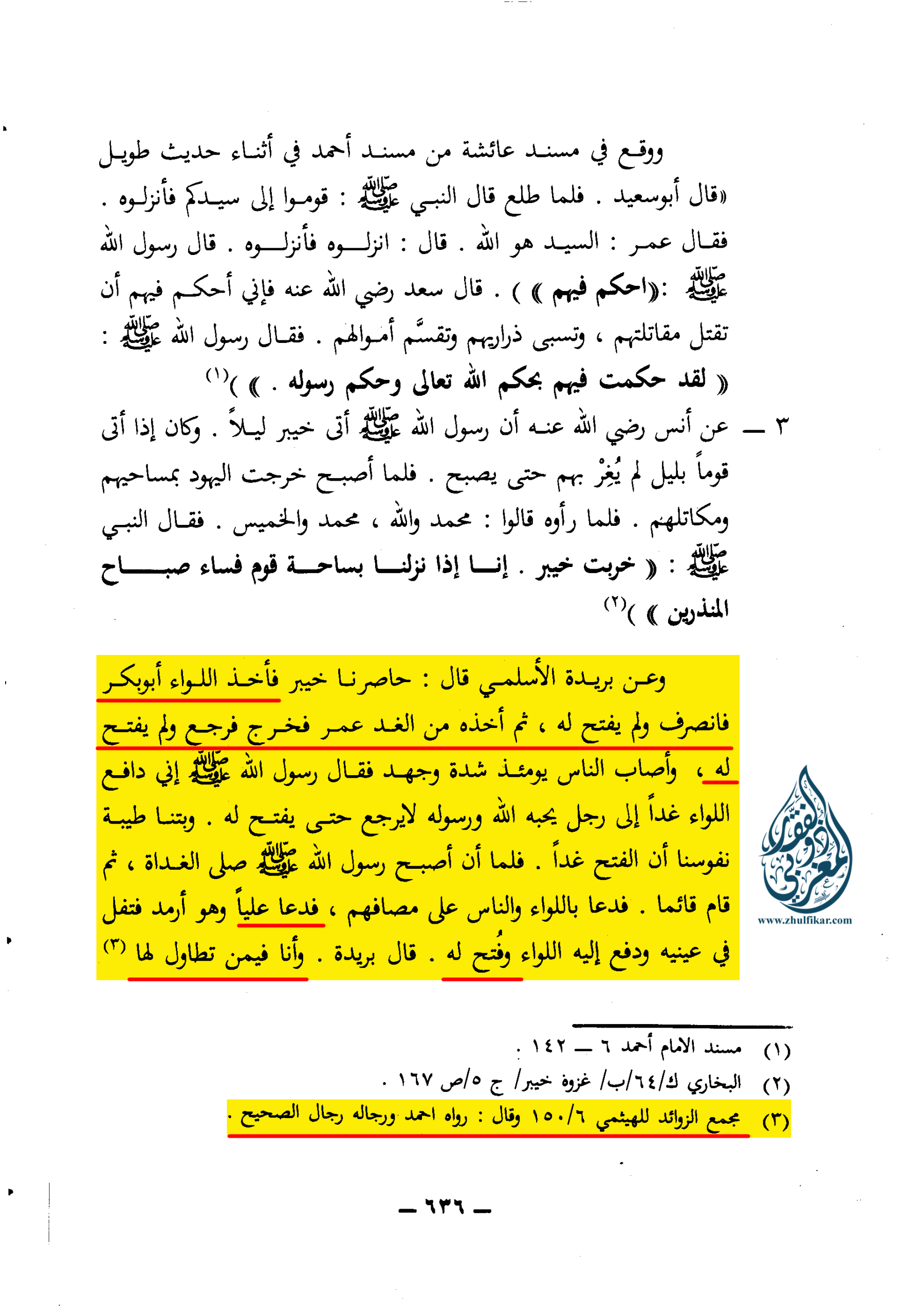(3) مجمع الزوائد للهيثمي 6/ 150 وقال: رواه أحمد ورجاله رجال الصحيح.»
