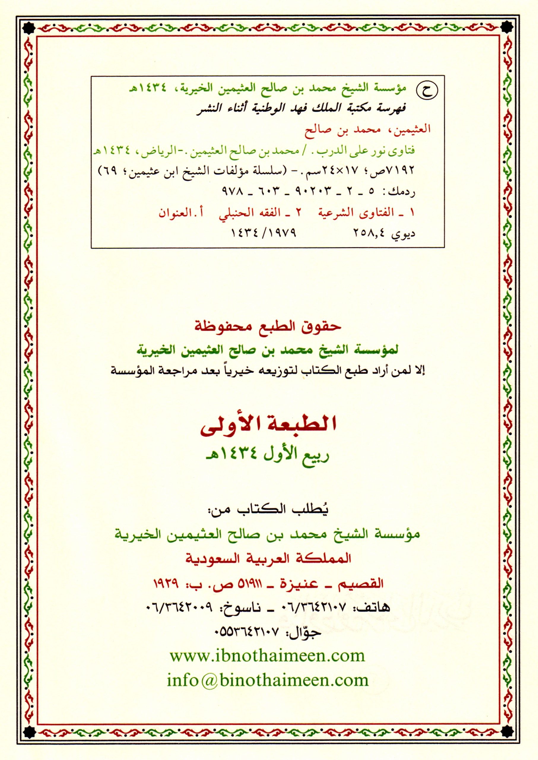 المصدر: فتاوى نور على الدرب، ج٢، ص٤٦١-٤٦٢، الناشر: مؤسسة الشيخ محمد بن صالح العثيمين الخيرية