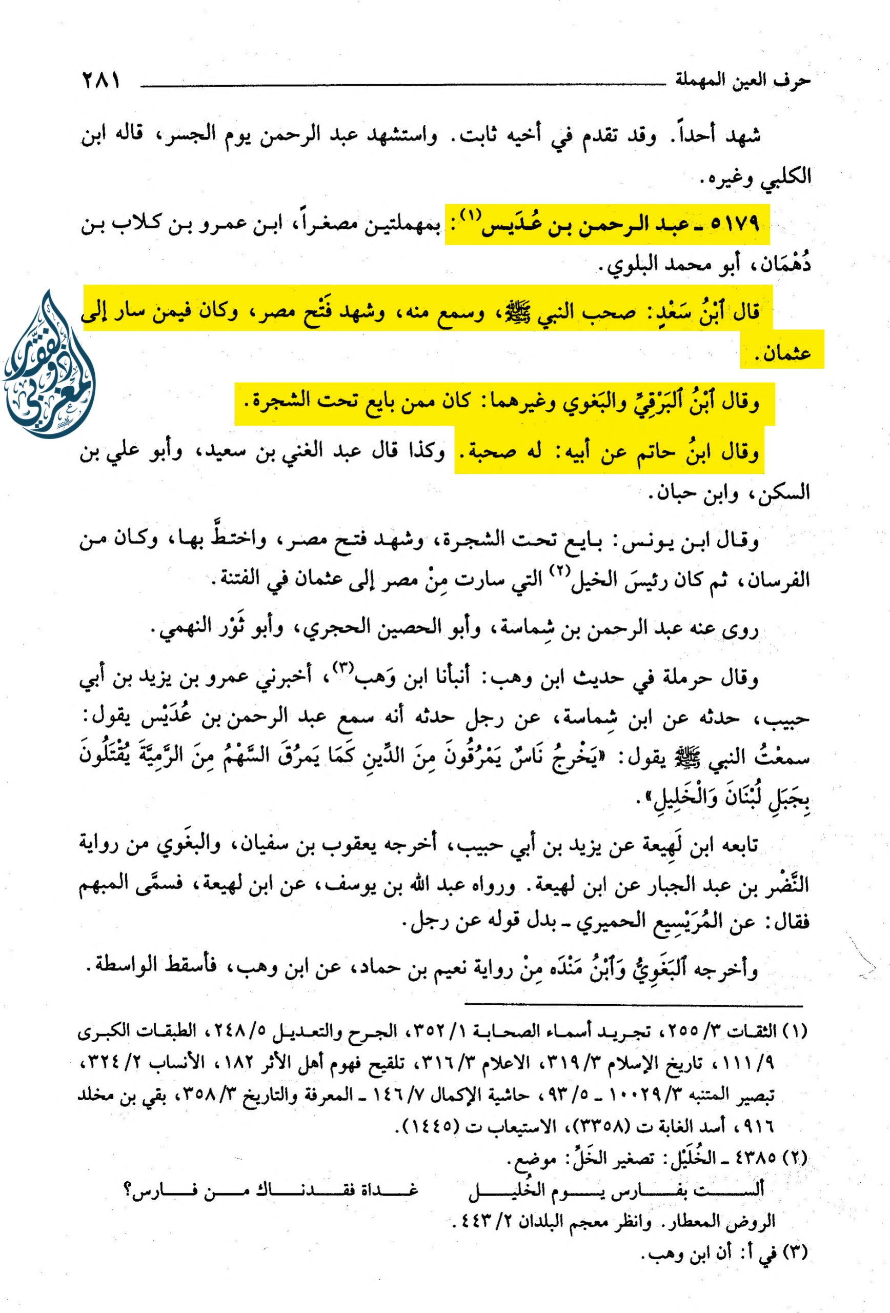 ‌‌5179- عبد الرحمن بن عديس «1» :