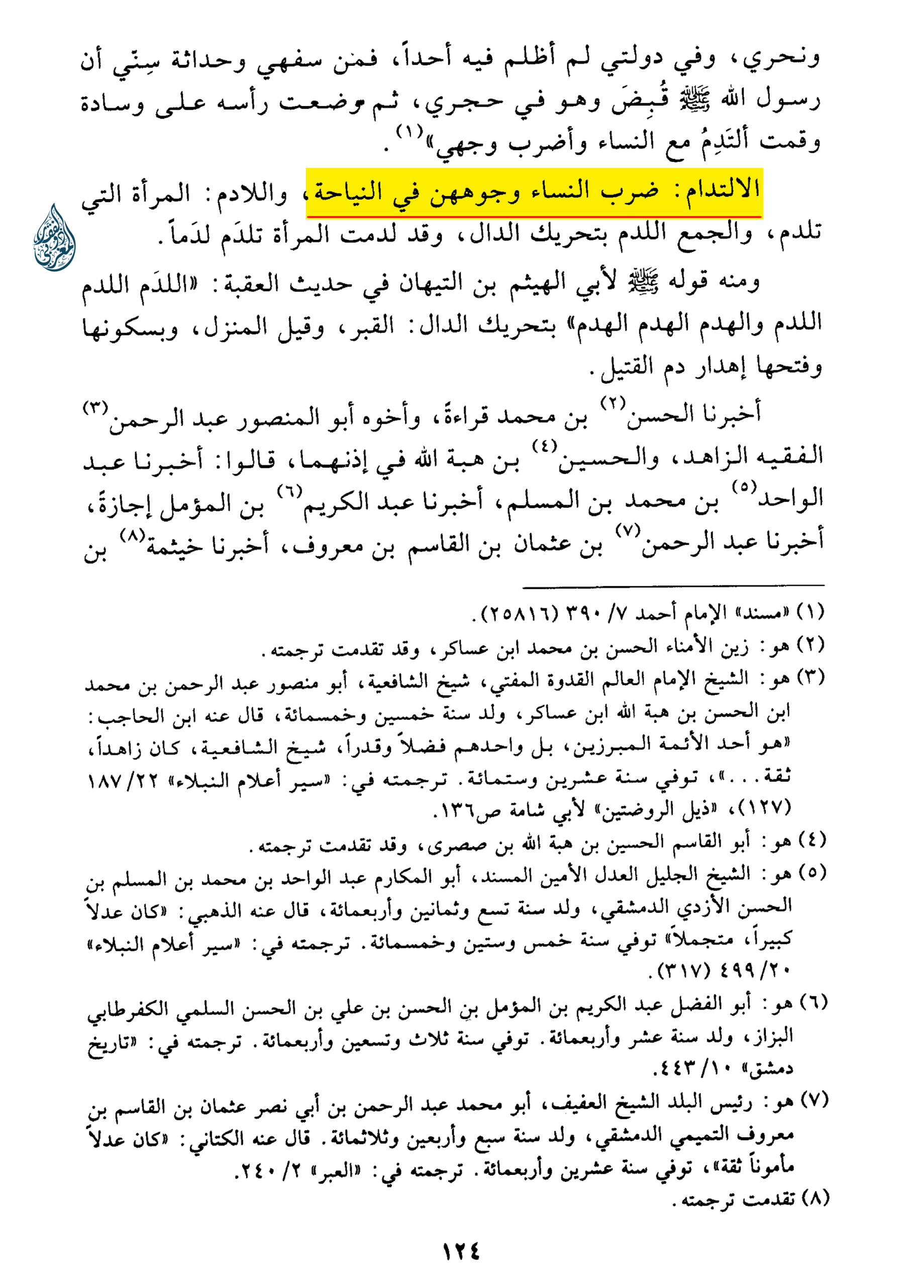 «إتحاف الزائر وإطراف المقيم للسائر لأبي اليمن ابن عساكر» (ص124):