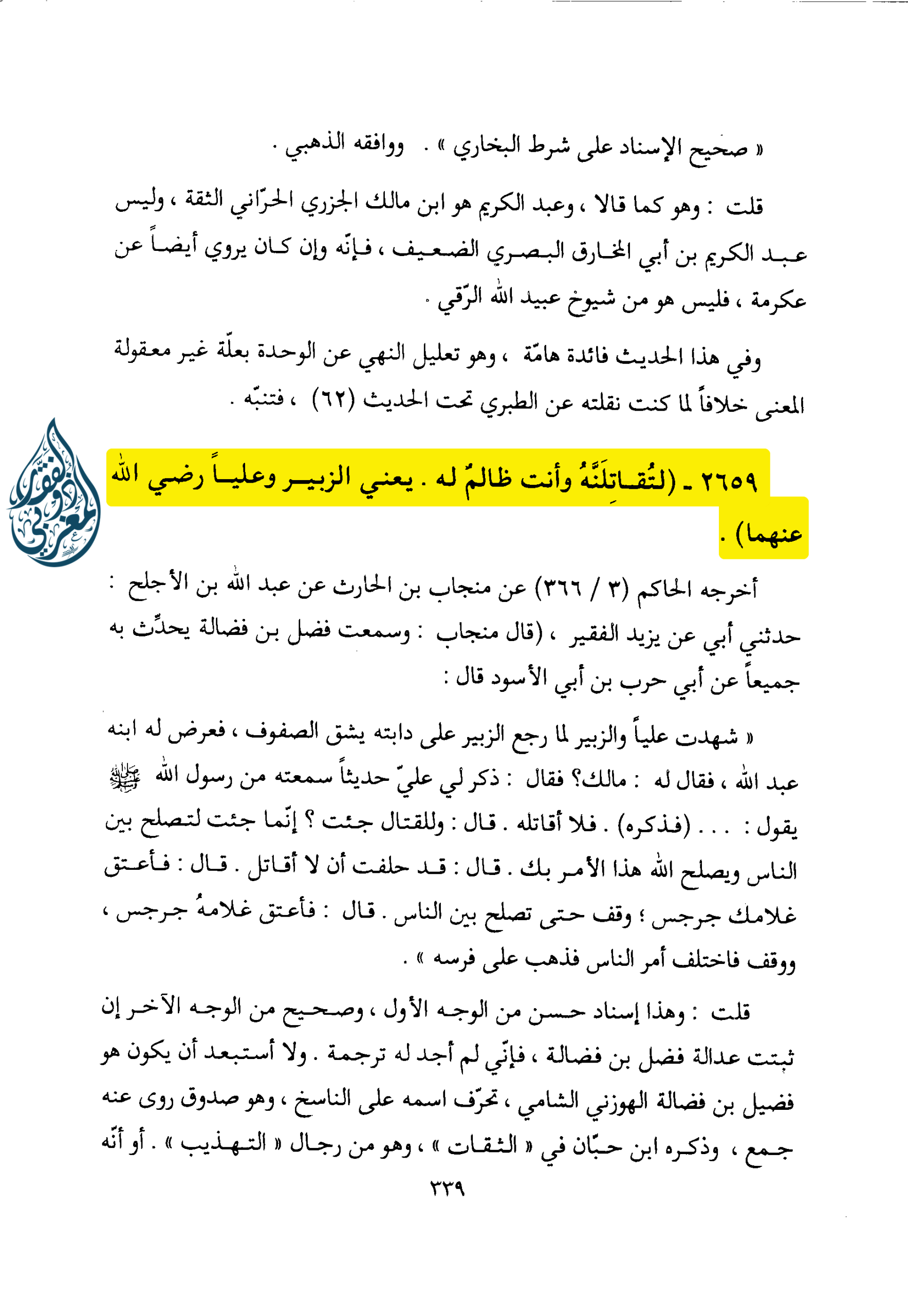 «‌‌2659 – ” ‌لتقاتلنه ‌وأنت ظالم له. يعني الزبير وعليا رضي الله عنهما “.»