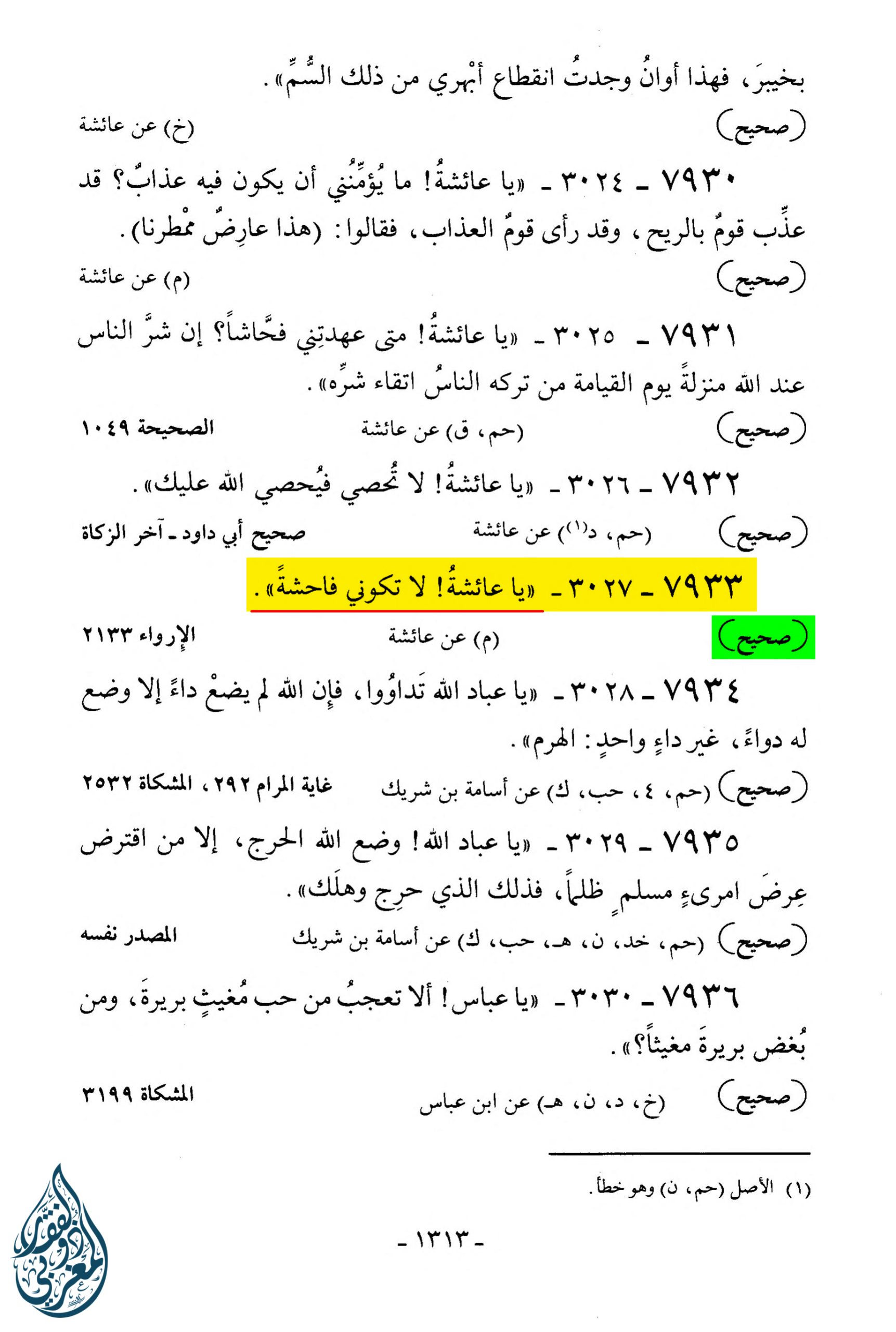 7933 – 3027 – «يا عائشة! لا تكوني فاحشة» .