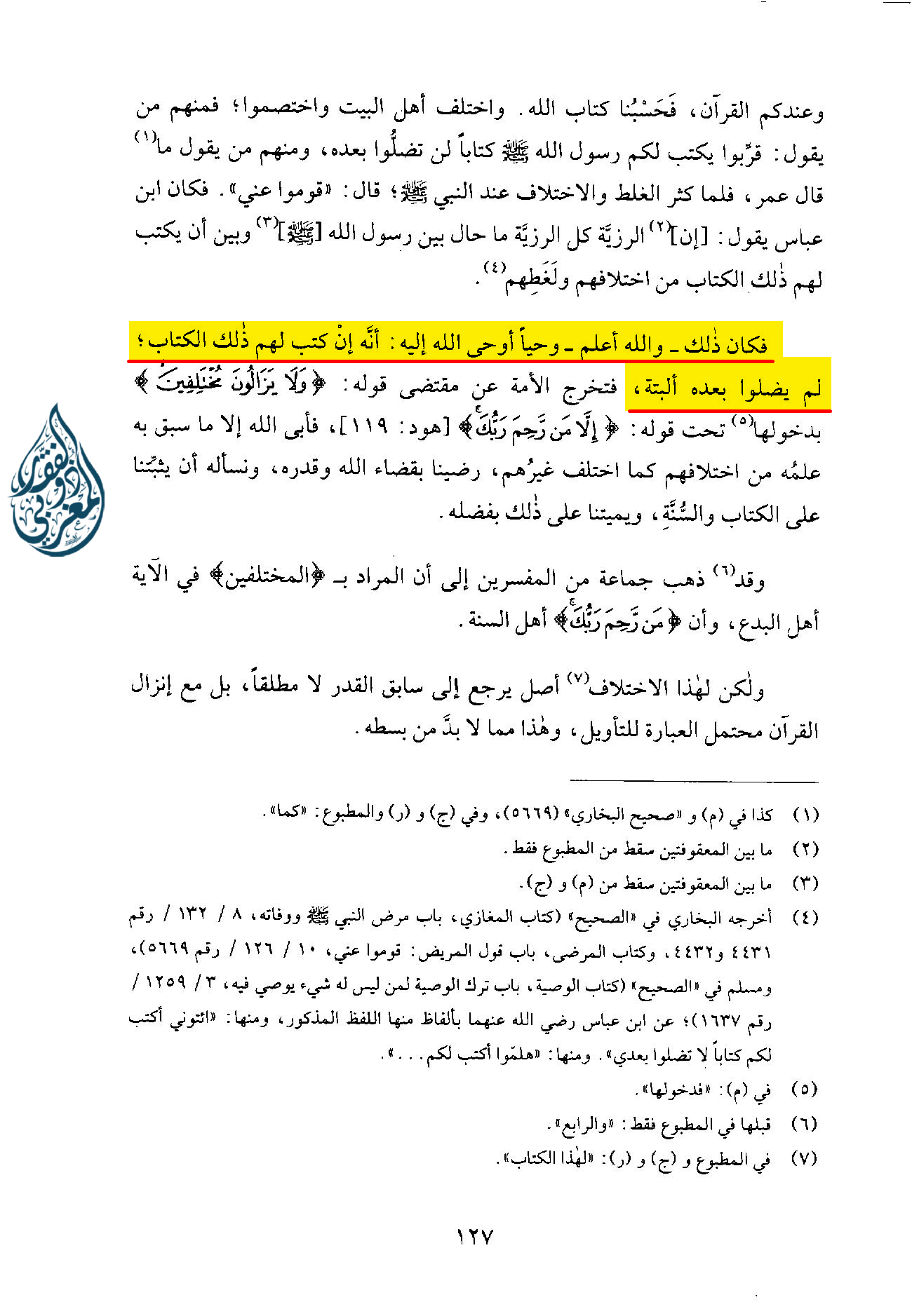 «فَكَانَ ذَلِكَ ـ وَاللَّهُ أَعْلَمُ ـ ‌وَحْيًا ‌أَوْحَى ‌اللَّهُ ‌إِلَيْهِ أَنَّهُ إِنْ كَتَبَ لَهُمْ ذَلِكَ الْكِتَابَ لَمْ يَضِلُّوا بَعْدَهُ الْبَتَّةَ،»