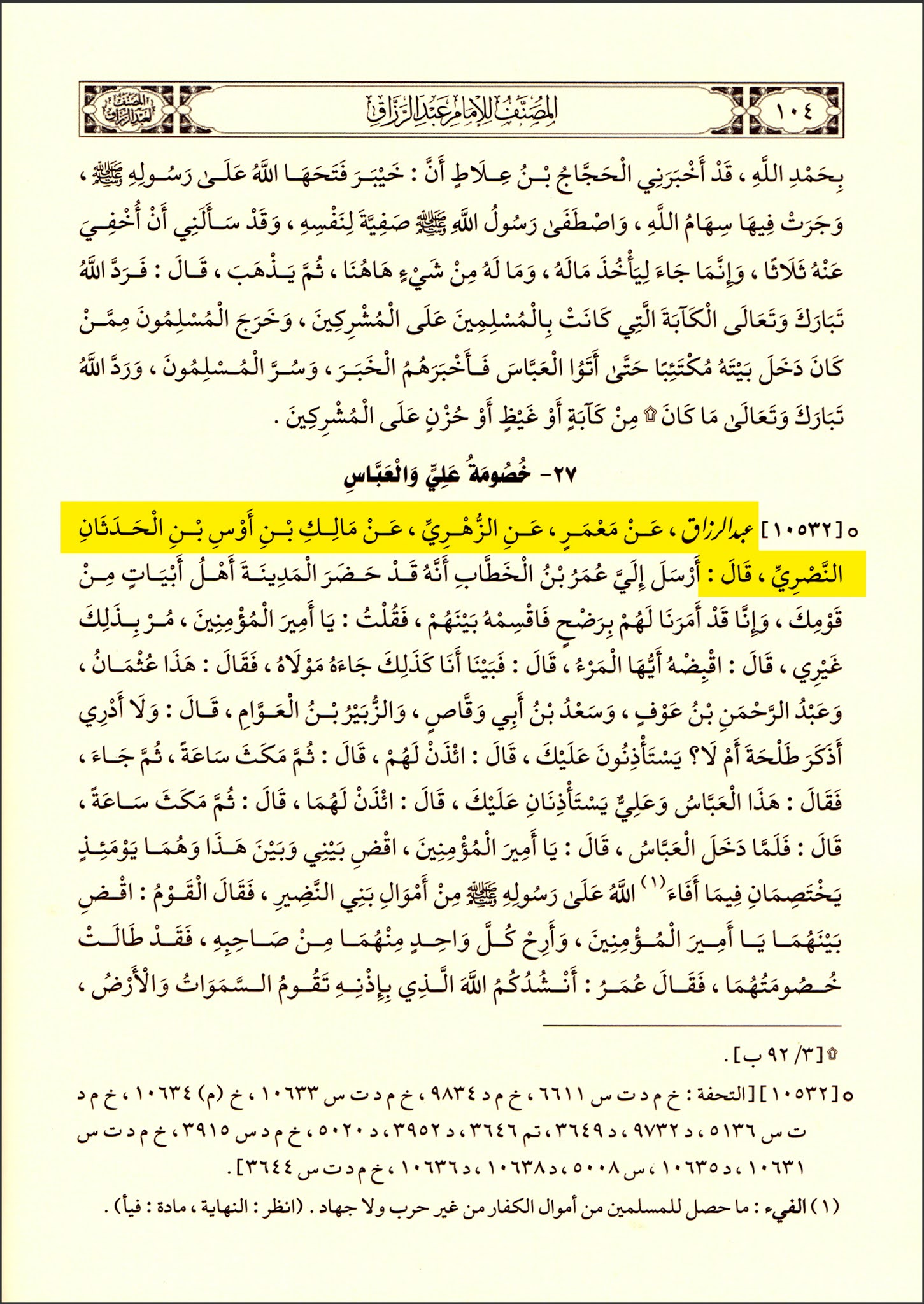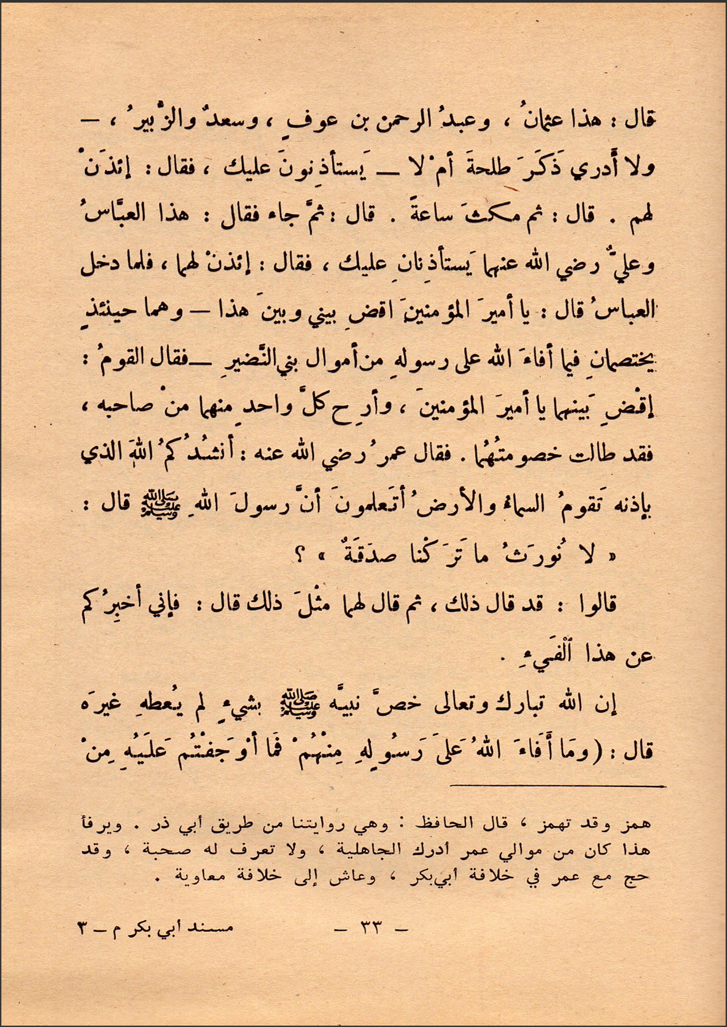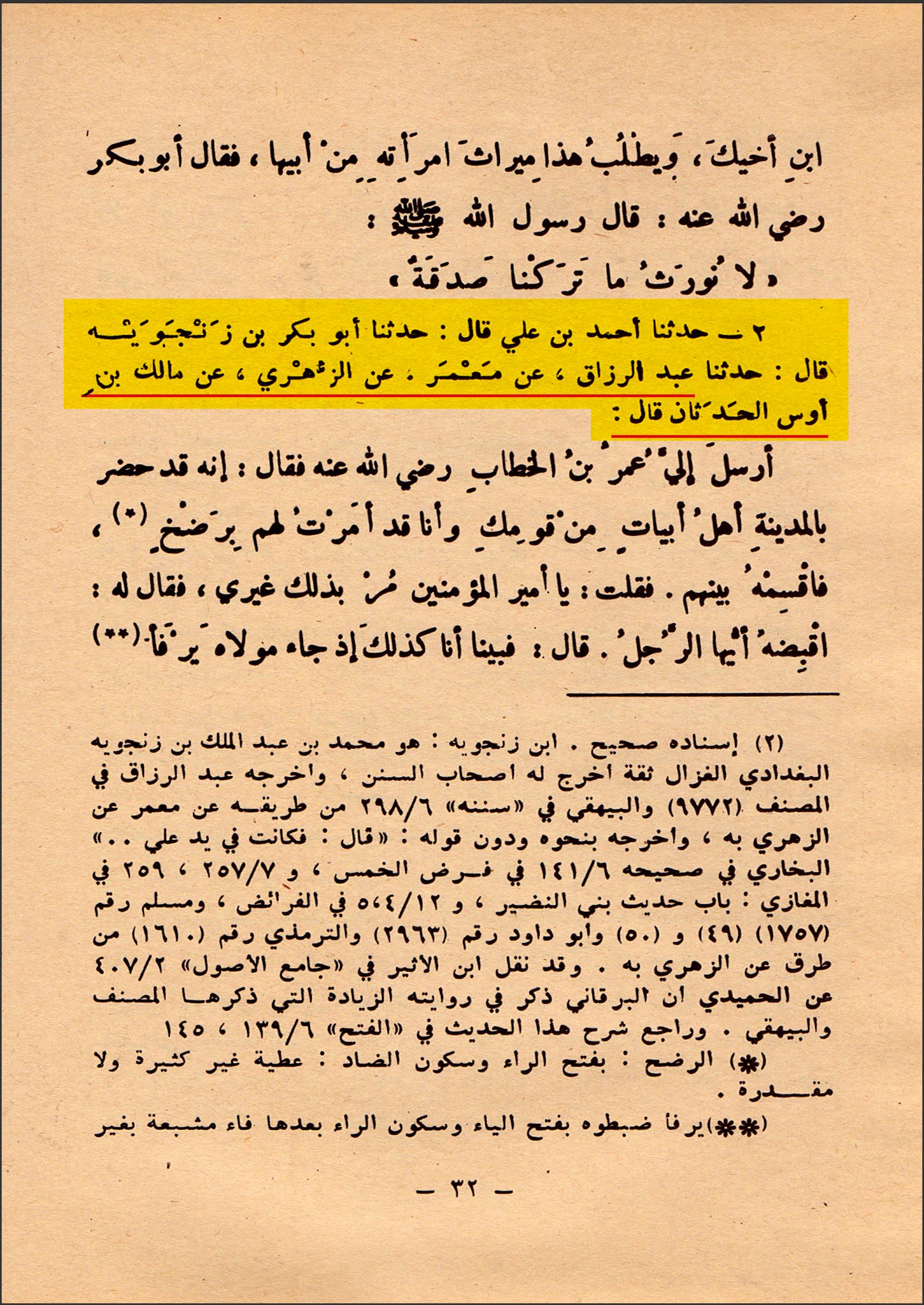 روى الحافظُ أبو بكر المروزي في كتابه (مسند أبي بكر الصديق، ص٣٢-٣٥، رقم الحديث ٢) عن عبد الرزاق الصنعانيّ الروايةَ التي ذكرناها في المورد (٢٩) فيما يخص موقف أمير المؤمنين (عليه السلام) من أبي بكر وعمر، وكانت روايته عن عبد الرزاق بواسطة واحدة، وإسناده كالتالي: (حدثنا أبو بكر بن زنجويه، حدثنا عبد الرزاق،..) إلى نهاية إسناده كما هو في رواية عبد الرزاق في مصنّفه التي تقدّم ذكرها، وقد حُذِفَتْ عِبارة (ظالمٌ فاجرٌ) في كلا الموردين بالرواية في مُسند المروزيّ.