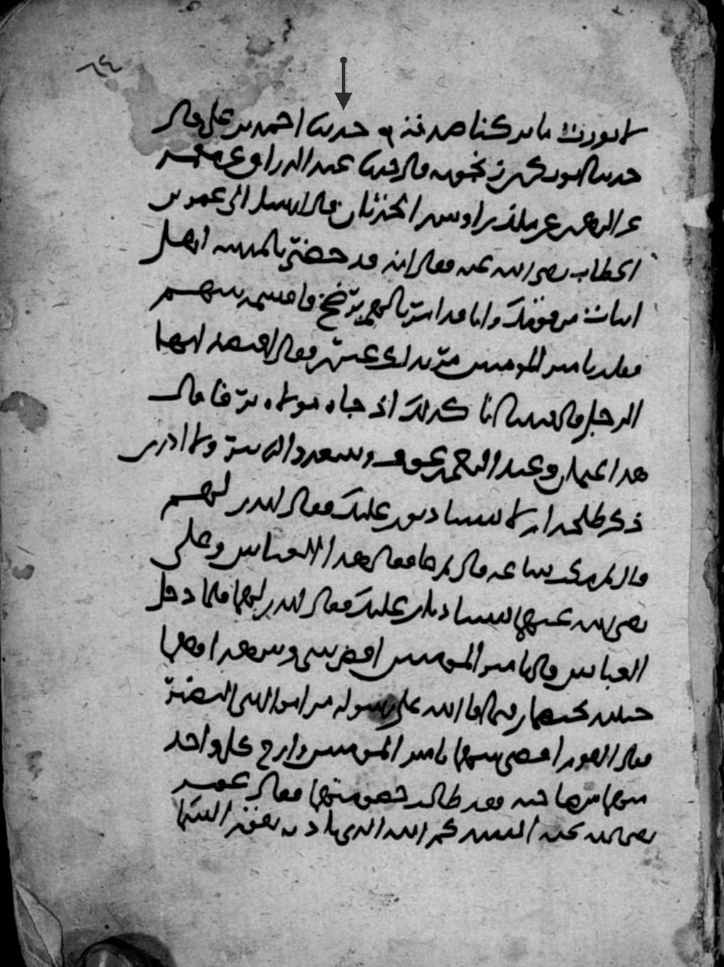 وفي سبيل التثبّت من تاريخ التحريف وجهته، هل هو مُحدَثٌ من المحقق أم قديمٌ من المؤلف أو ناسخ الأصل، راجعتُ النسخةَ الخطيّة التي اعتمد عليها المحقق شعيبُ الأرناؤوط*، وبعد ملاحظة الموضع – محل البحث – تبيّن أن اللفظ غير مُثبَتٍ في النسخة الخطيّة، فيكون الحذف مردَّداً بين مؤلِّف الكتاب أو ناسخه، إلا أنّ هذا لا يرفع المؤاخذة عن محقق الكتاب شعيب الأرناؤوط، حيث إنّه مُلتَفِتٌ إلى وجودِ حَذْفٍ اختلّت بسببه العبارة، وهو قد أشار في الهامش إلى مكان الرواية في مصنف عبد الرزاق وبيَّنَ بعض الفروق بين الروايتين، ومع ذلك اكتفى بوضع ثلاث نقاط، ولم يُشر إلى الكلمتين المحذوفتين، مع أنّه قام باستدراك ومقارنة بعض الألفاظ من مصادر أخرى خلال تحقيق بعض الأحاديث في المسند، حيثُ استدرك تلك الكلمات بالاستفادة من مراجعة الرواية في مصادرها الأخرى، ويمكن للقارئ أن يُلاحظ الصفحات ٤٩-٥٥-٦٧-٩٧-٩٨ من الكتاب المحقَّق ليعاين استدراكه لبعض الألفاظ ومقارنتها بالمصادر الأخرى مثل مسند أحمد بن حنبل ومستخرج أبي عوانة وغيرهما، ولكنه في هذه الرواية اكتفى بالتنقيط وتجاهل الأمر!