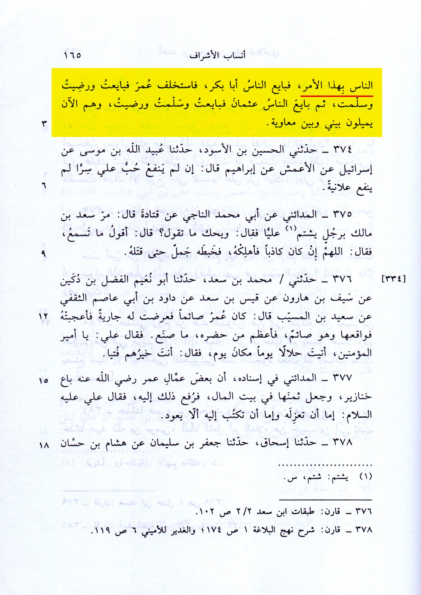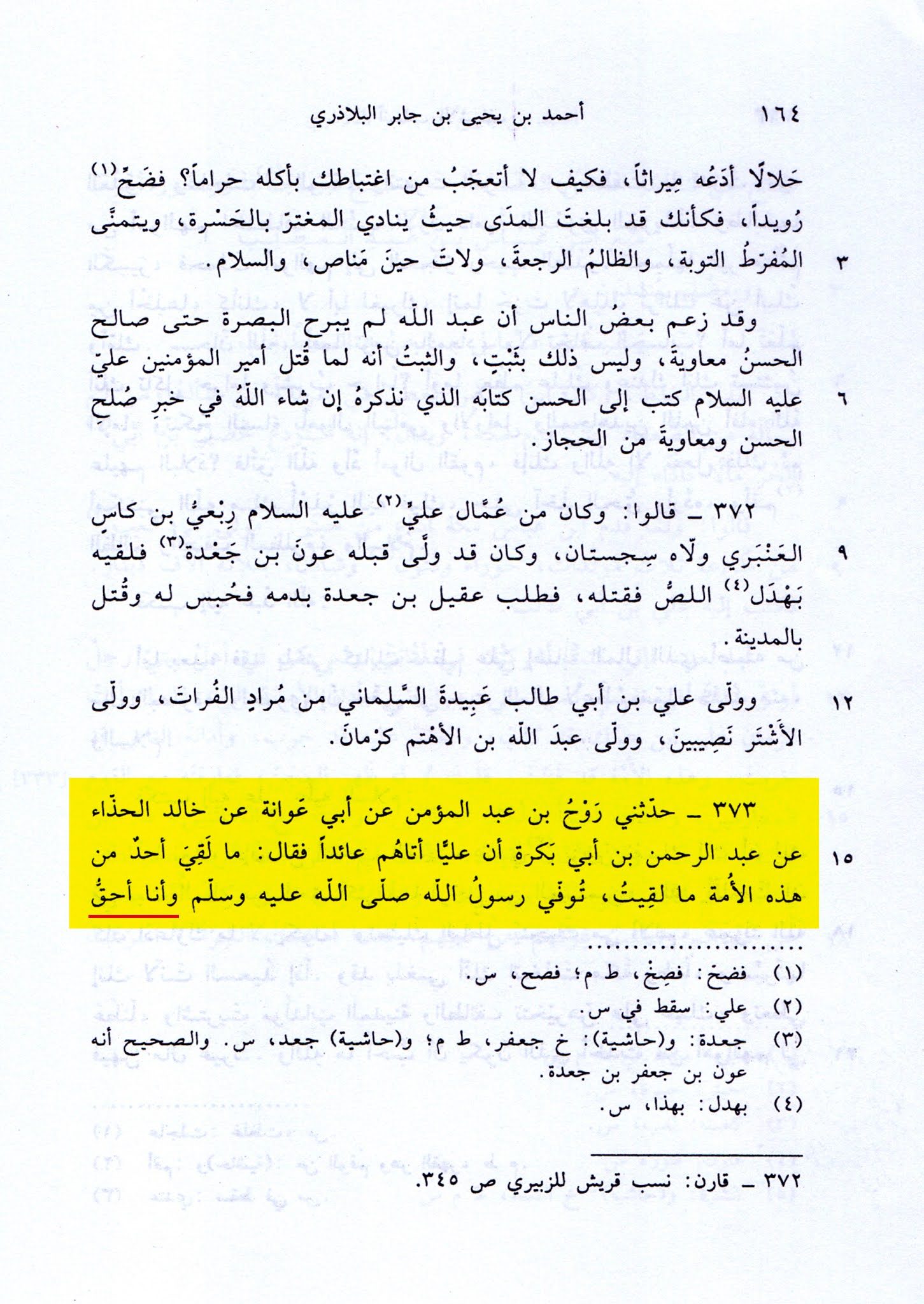 الرواية في كتاب (أنساب الأشراف) للبلاذري (قبل التحريف)