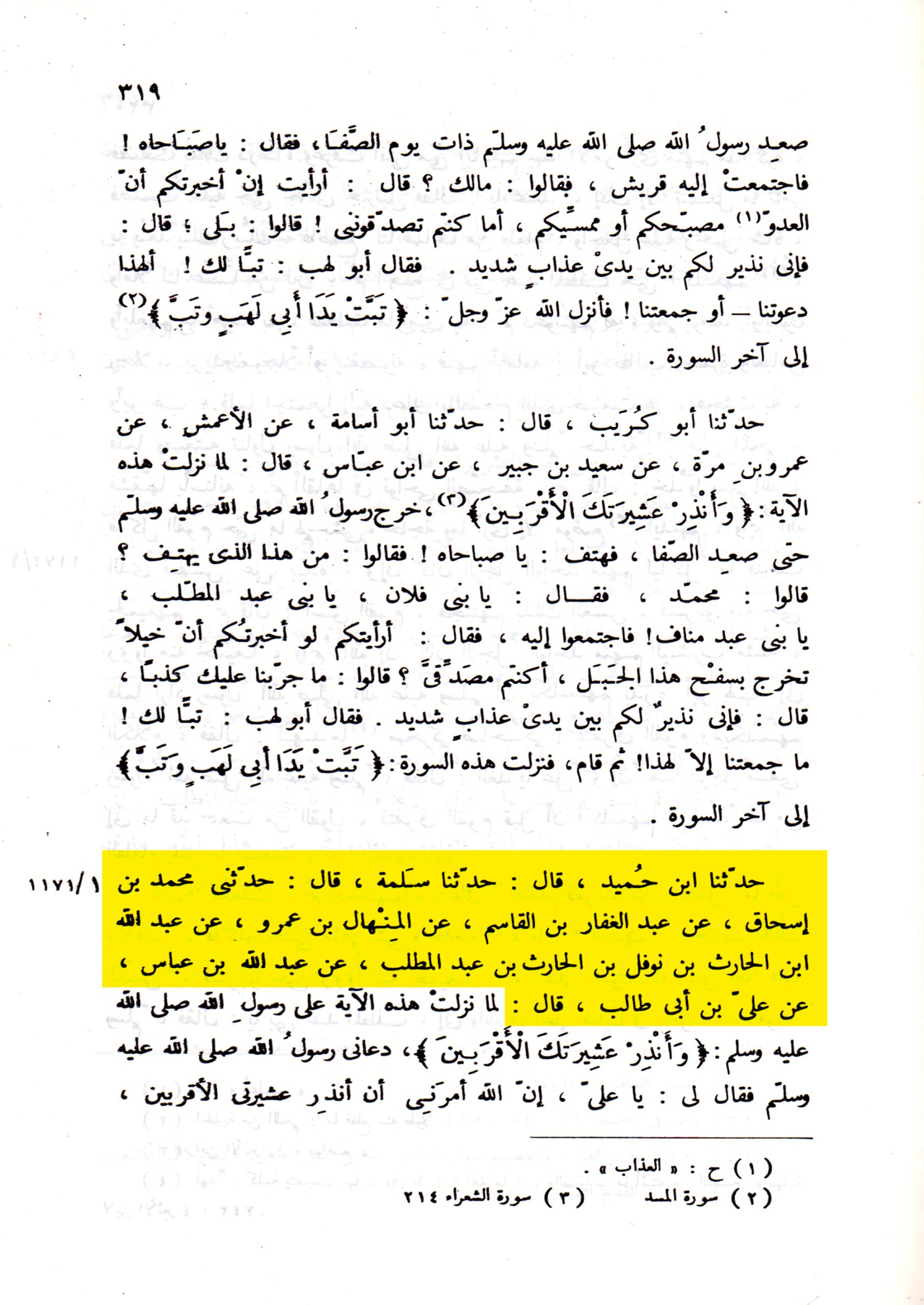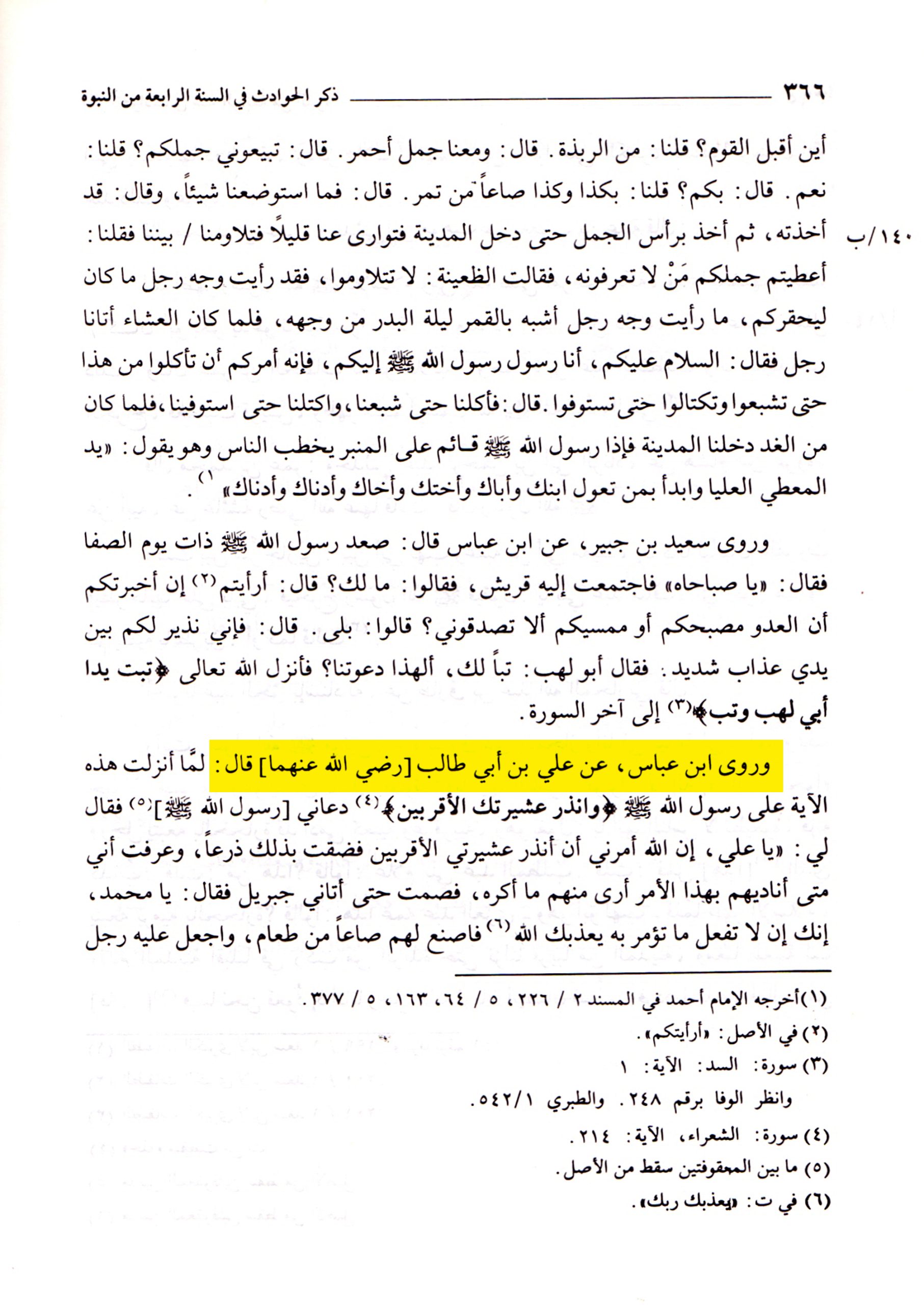 نقل ابن الجوزي حديث الدار الذي يدل على النص على ولاية أمير المؤمنين عليه السّلام في كتابه (المنتظم في تاريخ الملوك والأمم) ولكن حُذِفَ منه ما يدل على ولاية أمير المؤمنين عليه السّلام، حيث حُذف وصف الإمام بـ«وصيي وخليفتي».