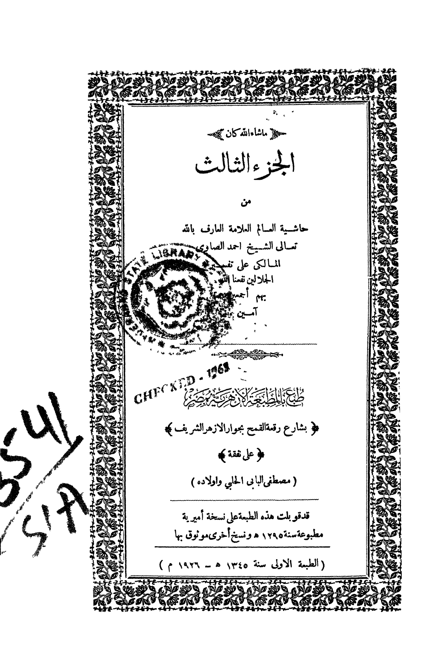 وهَذا النصُّ موجودٌ فِي حاشيته على تفسير الجلالين في طبعةٍ قديمة تعود إلى سنة 1926ميلاديّة/1345هجريّة[1]، وهذه الطبعة من أقدم الطبعات وأبعدها عن يد التحريف الوهّابية، وتعود إلى ما قبل 90 عاماً، وأيضاً: قد قوبلت هذه الطبعة على طبعة أخرى سنة 1295 هجريّة ونسخٍ خطية أخرى.