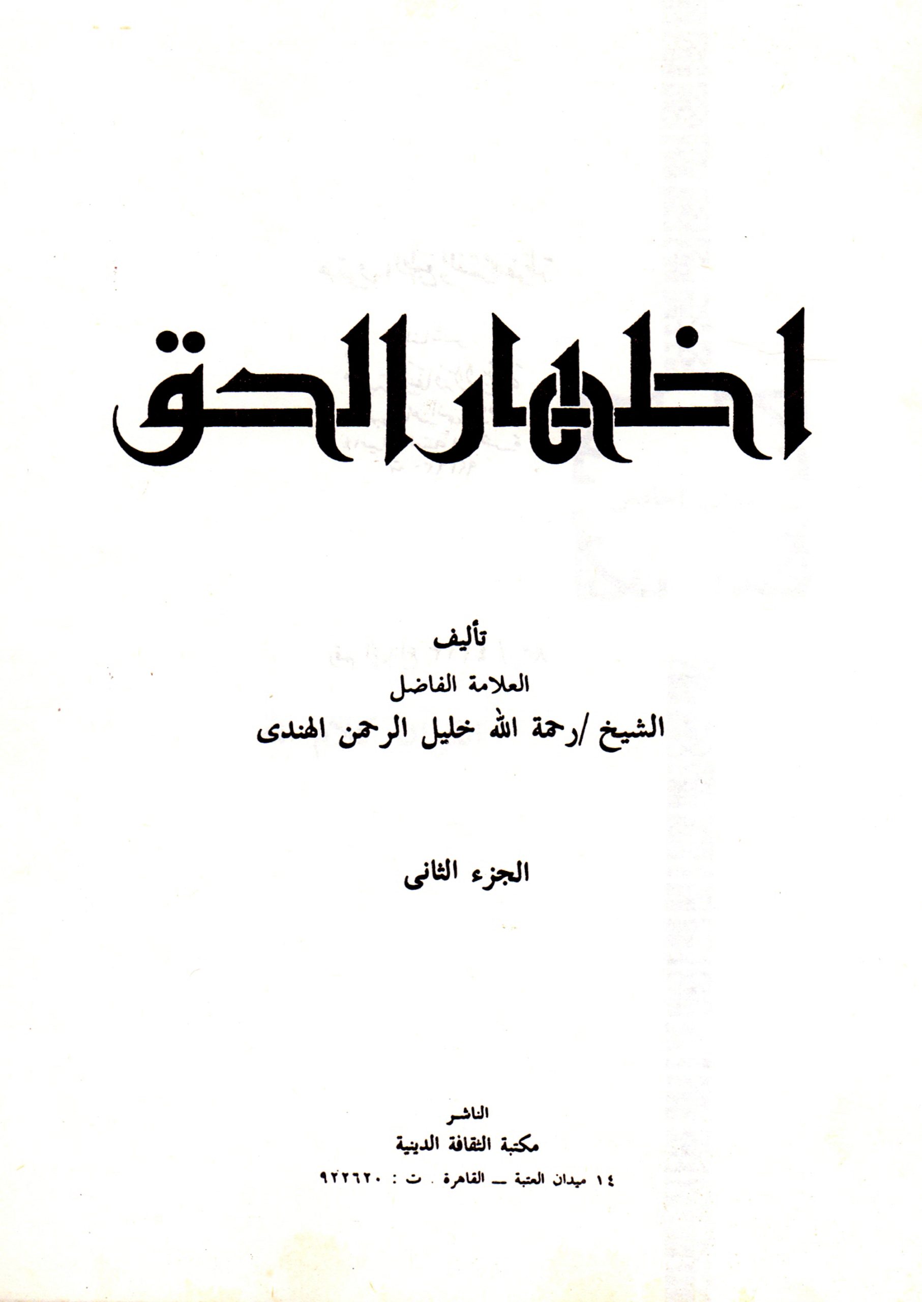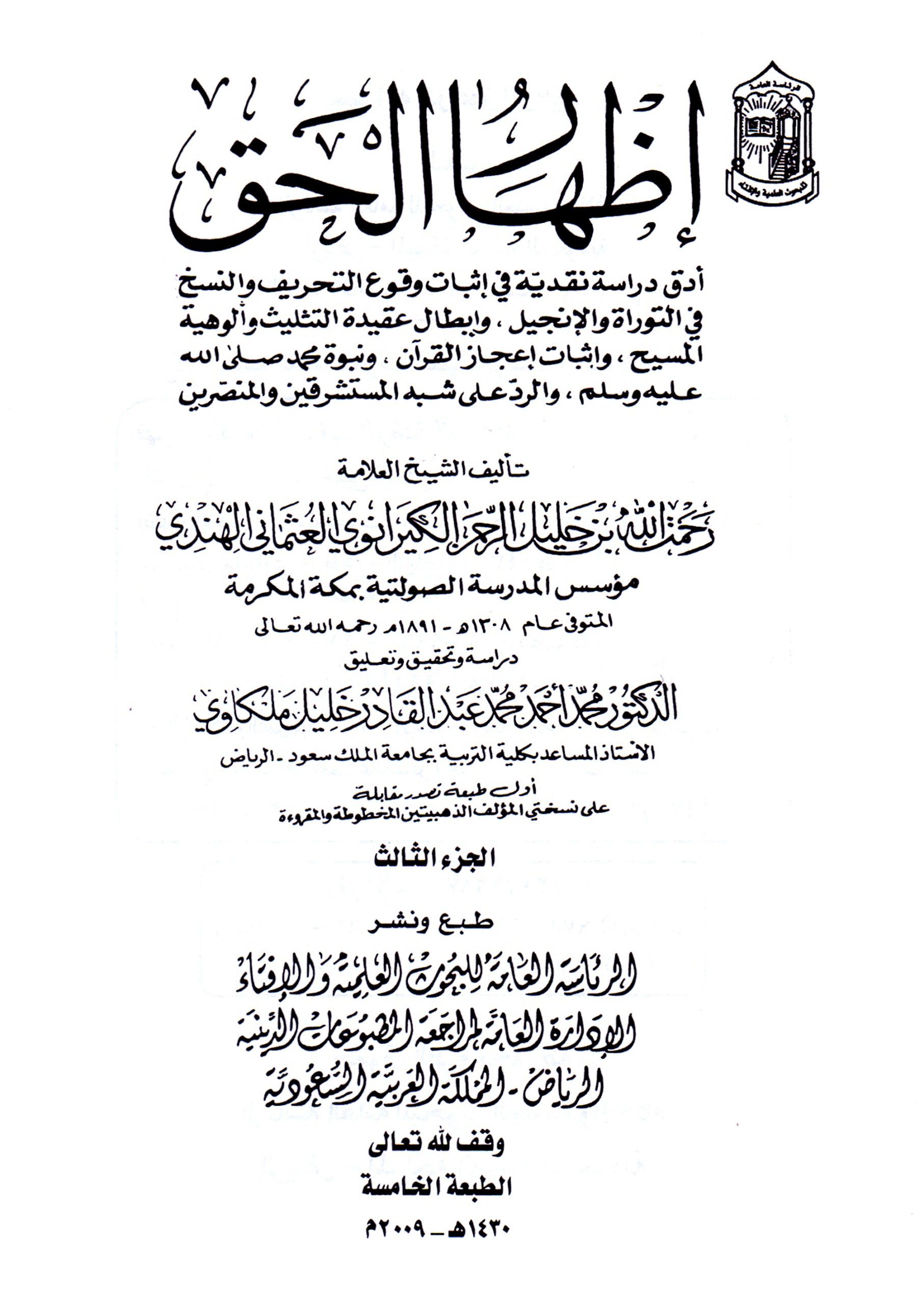 كشف التحريفات (٦٨): تحريف الوهابية كتاب إظهار الحق للشيخ رحمة الله بن خليل الرحمن الهندي